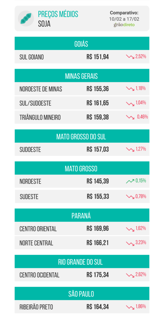 Já em GO e MG, o clima mais seco permitiu um avanço na colheita, atingindo 17% e 9%, respectivamente.